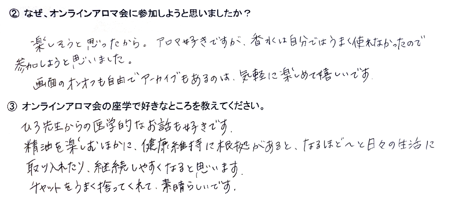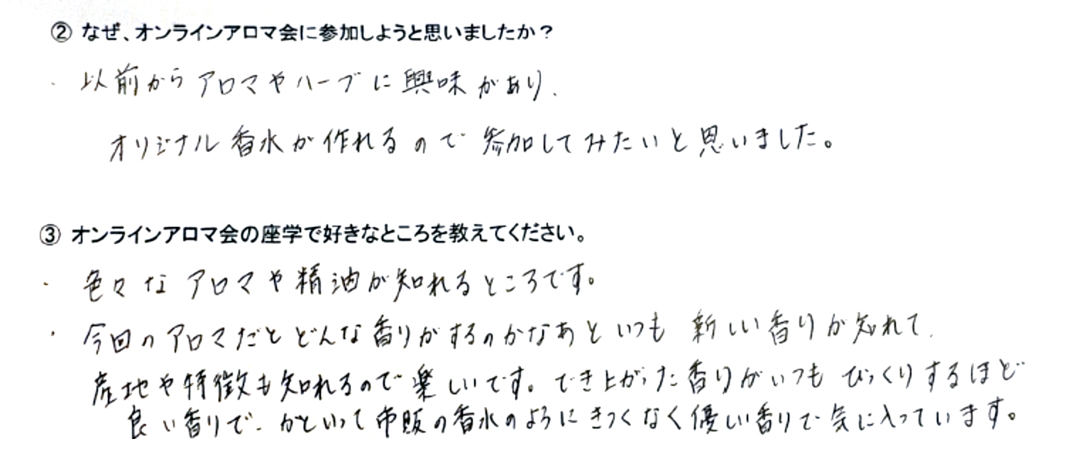 Q.なぜ、オンラインアロマ会に参加しようと思いましたか?